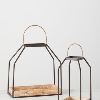 Lantern - Wood Tray / Iron Small